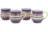 This Ring Of Flowers 4 Mugs was handmade and hand decorated in Boleslawiec, Poland by skilled artisans according to old traditional methods. This is a Polish pottery Signature Unikat, which means that it has been hand painted with both sponges and brushes and it is signed by the artist who painted it. Unikat pieces are the most intricate works of art. Larger Unikat items take hours of very careful work to finish. This Polish stoneware is microwave, dishwasher, freezer, and oven safe up to 480°F. It does not contain lead or cadmium. It is part of the Ring Of Flowers Collection.