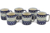 This Bold Blue Dots Set of Four 12 oz Bubble Mugs was handmade and hand decorated in Boleslawiec, Poland by skilled artisans according to old traditional methods. This Polish stoneware is microwave, dishwasher, freezer, and oven safe up to 480°F. It does not contain lead or cadmium. It is part of the Bold Blue Dots Collection.