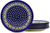 This Bold Blue Poppies Set of 6 dessert plates was handmade and hand decorated in Boleslawiec, Poland by skilled artisans according to old traditional methods. This is a Polish pottery Signature Unikat, which means that it has been hand painted with both sponges and brushes and it is signed by the artist who painted it. Unikat pieces are the most intricate works of art. Larger Unikat items take hours of very careful work to finish. This Polish stoneware is microwave, dishwasher, freezer, and oven safe up to 480°F. It does not contain lead or cadmium. It is part of the Bold Blue Poppies Collection.