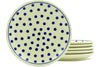 This Evangeline Set of 6 Plates was handmade and hand decorated in Boleslawiec, Poland by skilled artisans according to old traditional methods. This is a Polish pottery Signature Unikat, which means that it has been hand painted with both sponges and brushes and it is signed by the artist who painted it. Unikat pieces are the most intricate works of art. Larger Unikat items take hours of very careful work to finish. This Polish stoneware is microwave, dishwasher, freezer, and oven safe up to 480°F. It does not contain lead or cadmium. It is part of the Evangeline Collection.