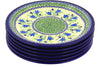This Evangeline Set of 6 Plates was handmade and hand decorated in Boleslawiec, Poland by skilled artisans according to old traditional methods. This is a Polish pottery Signature Unikat, which means that it has been hand painted with both sponges and brushes and it is signed by the artist who painted it. Unikat pieces are the most intricate works of art. Larger Unikat items take hours of very careful work to finish. This Polish stoneware is microwave, dishwasher, freezer, and oven safe up to 480°F. It does not contain lead or cadmium. It is part of the Evangeline Collection.