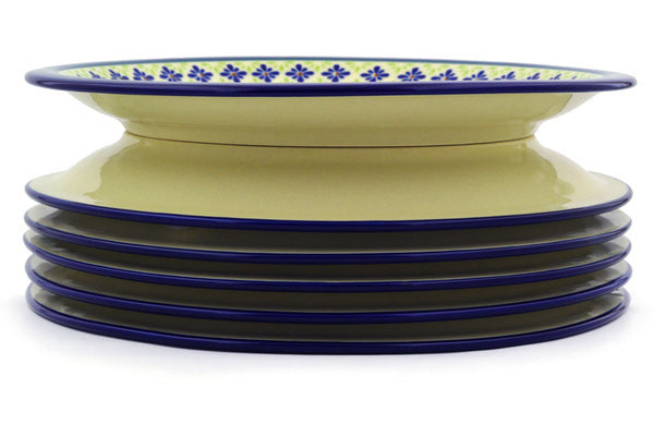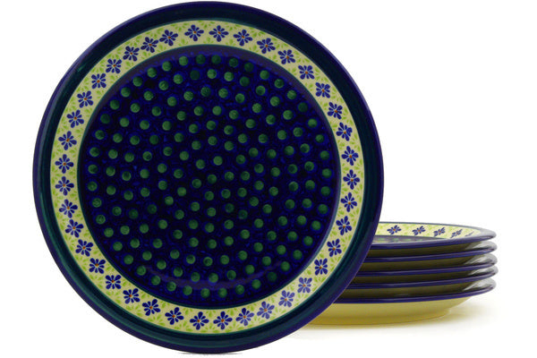 This Green Gingham Peacock Set of 6 Plates was handmade and hand decorated in Boleslawiec, Poland by skilled artisans according to old traditional methods. This Polish stoneware is microwave, dishwasher, freezer, and oven safe up to 480°F. It does not contain lead or cadmium. It is part of the Green Gingham Peacock Collection.