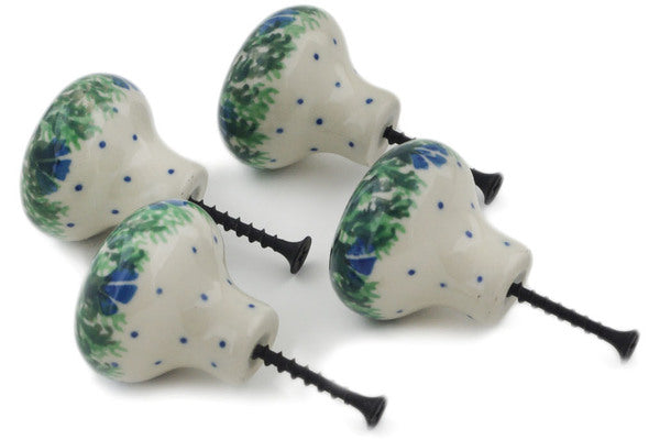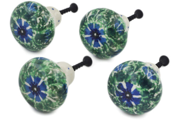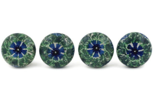 This Polish Wreath Set of 4 Drawer Pull Knobs 1-1/2 inch was handmade and hand decorated in Boleslawiec, Poland by skilled artisans according to old traditional methods. This Polish stoneware is microwave, dishwasher, freezer, and oven safe up to 480°F. It does not contain lead or cadmium. It is part of the Polish Wreath Collection.