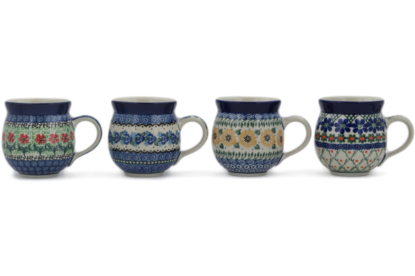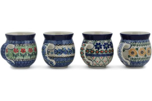 This Mix Set of Four 12 oz Bubble Mugs was handmade and hand decorated in Boleslawiec, Poland by skilled artisans according to old traditional methods. This Polish stoneware is microwave, dishwasher, freezer, and oven safe up to 480°F. It does not contain lead or cadmium. It is part of the Mix Collection.