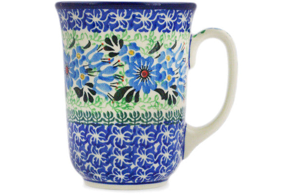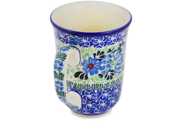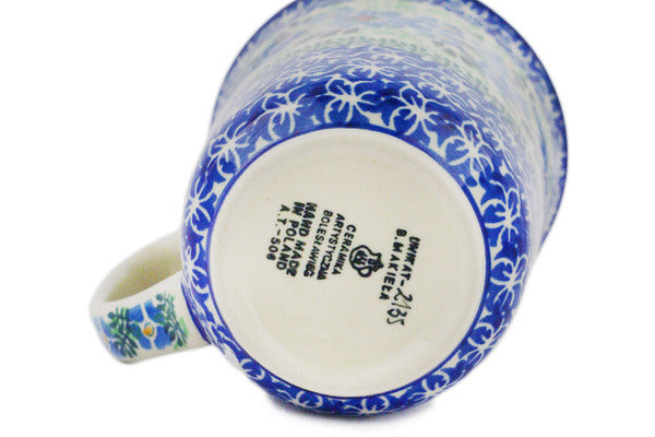 This Windswept Blues 17 oz Bistro Mug was handmade and hand decorated in Boleslawiec, Poland by skilled artisans according to old traditional methods. This is a Polish pottery Signature Unikat, which means that it has been hand painted with both sponges and brushes and it is signed by the artist who painted it. Unikat pieces are the most intricate works of art. Larger Unikat items take hours of very careful work to finish. This Polish stoneware is microwave, dishwasher, freezer, and oven safe up to 480°F. It does not contain lead or cadmium. It is part of the Windswept Blues Collection.