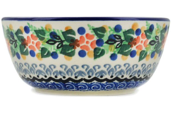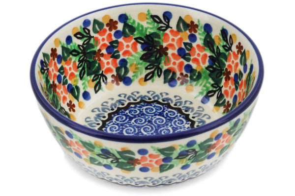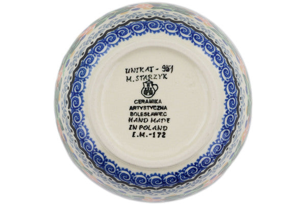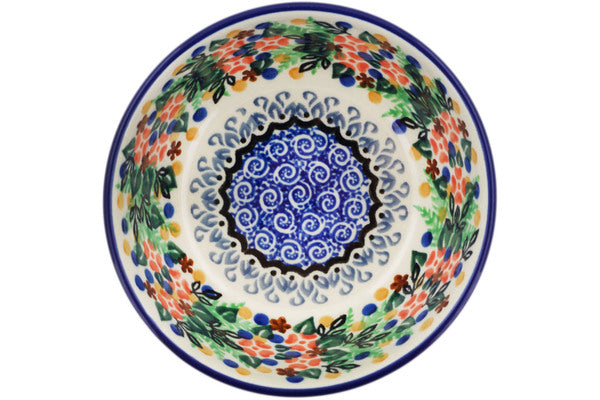 This Springtime Wreath 5" Bowl was handmade and hand decorated in Boleslawiec, Poland by skilled artisans according to old traditional methods. This is a Polish pottery Signature Unikat, which means that it has been hand painted with both sponges and brushes and it is signed by the artist who painted it. Unikat pieces are the most intricate works of art. Larger Unikat items take hours of very careful work to finish. This Polish stoneware is microwave, dishwasher, freezer, and oven safe up to 480°F. It does not contain lead or cadmium. It is part of the Springtime Wreath Collection.