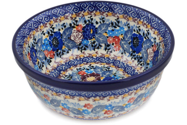 This Meadow Of Jewels 6" Bowl was handmade and hand decorated in Boleslawiec, Poland by skilled artisans according to old traditional methods. This is a Polish pottery Signature Unikat, which means that it has been hand painted with both sponges and brushes and it is signed by the artist who painted it. Unikat pieces are the most intricate works of art. Larger Unikat items take hours of very careful work to finish. This Polish stoneware is microwave, dishwasher, freezer, and oven safe up to 480°F. It does not contain lead or cadmium. It is part of the Meadow Of Jewels Collection.