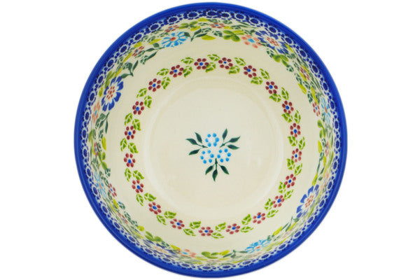 This Playground Meadow 6" Bowl was handmade and hand decorated in Boleslawiec, Poland by skilled artisans according to old traditional methods. This is a Polish pottery Signature Unikat, which means that it has been hand painted with both sponges and brushes and it is signed by the artist who painted it. Unikat pieces are the most intricate works of art. Larger Unikat items take hours of very careful work to finish. This Polish stoneware is microwave, dishwasher, freezer, and oven safe up to 480°F. It does not contain lead or cadmium. It is part of the Playground Meadow Collection.