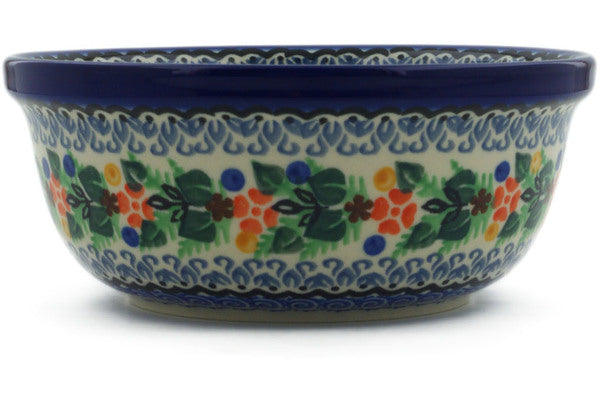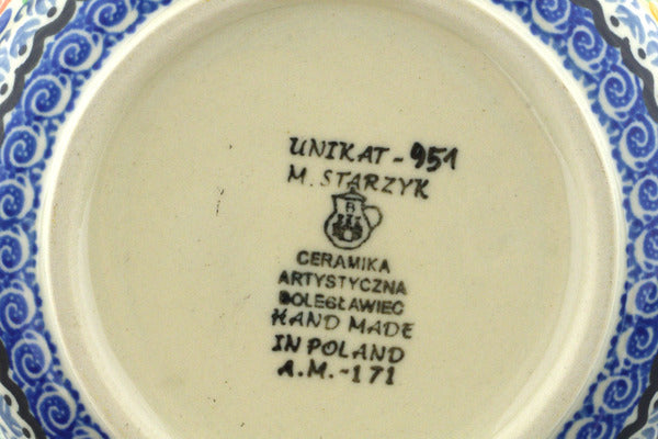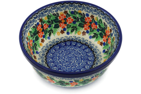 This Springtime Wreath 6" Bowl was handmade and hand decorated in Boleslawiec, Poland by skilled artisans according to old traditional methods. This is a Polish pottery Signature Unikat, which means that it has been hand painted with both sponges and brushes and it is signed by the artist who painted it. Unikat pieces are the most intricate works of art. Larger Unikat items take hours of very careful work to finish. This Polish stoneware is microwave, dishwasher, freezer, and oven safe up to 480°F. It does not contain lead or cadmium. It is part of the Springtime Wreath Collection.