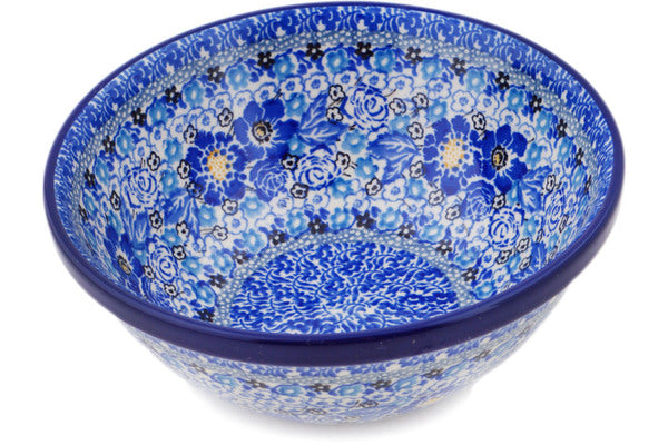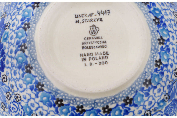 This Ultramarine 6" Bowl was handmade and hand decorated in Boleslawiec, Poland by skilled artisans according to old traditional methods. This is a Polish pottery Signature Unikat, which means that it has been hand painted with both sponges and brushes and it is signed by the artist who painted it. Unikat pieces are the most intricate works of art. Larger Unikat items take hours of very careful work to finish. This Polish stoneware is microwave, dishwasher, freezer, and oven safe up to 480°F. It does not contain lead or cadmium. It is part of the Ultramarine Collection.