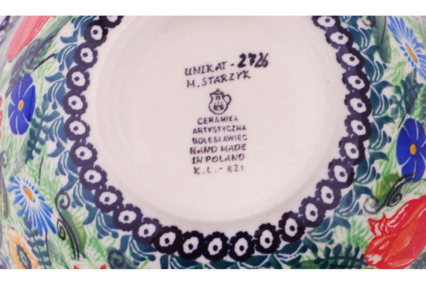 This Wildflower Path 6" Bowl was handmade and hand decorated in Boleslawiec, Poland by skilled artisans according to old traditional methods. This is a Polish pottery Signature Unikat, which means that it has been hand painted with both sponges and brushes and it is signed by the artist who painted it. Unikat pieces are the most intricate works of art. Larger Unikat items take hours of very careful work to finish. This Polish stoneware is microwave, dishwasher, freezer, and oven safe up to 480°F. It does not contain lead or cadmium. It is part of the Wildflower Path Collection.
