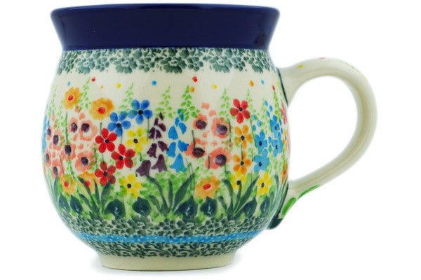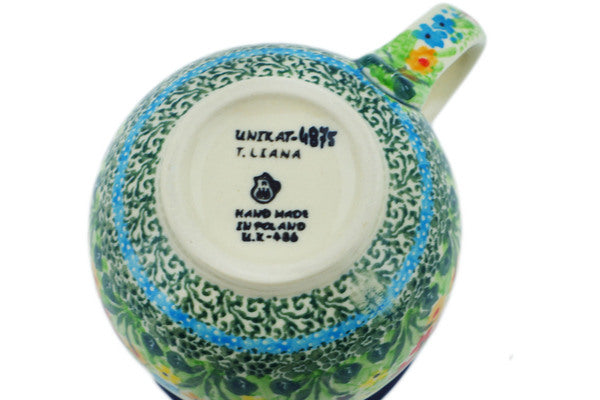 This Colors Of The Wind 12oz Bubble Mug was handmade and hand decorated in Boleslawiec, Poland by skilled artisans according to old traditional methods. This is a Polish pottery Signature Unikat, which means that it has been hand painted with both sponges and brushes and it is signed by the artist who painted it. Unikat pieces are the most intricate works of art. Larger Unikat items take hours of very careful work to finish. This Polish stoneware is microwave, dishwasher, freezer, and oven safe up to 480°F. It does not contain lead or cadmium. It is part of the Colors Of The Wind Collection.