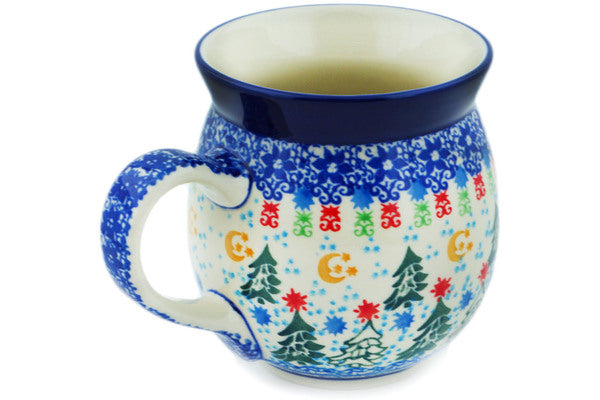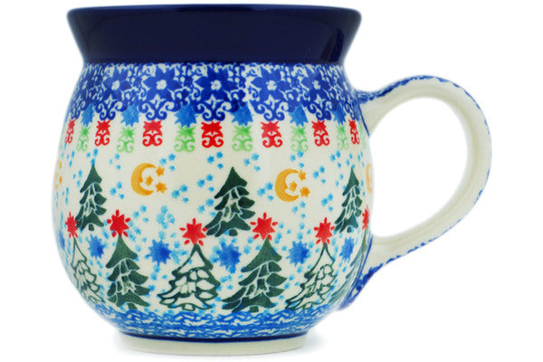 This Glowing Christmas Trees 16 oz Bubble Mug was handmade and hand decorated in Boleslawiec, Poland by skilled artisans according to old traditional methods. This is a Polish pottery Signature Unikat, which means that it has been hand painted with both sponges and brushes and it is signed by the artist who painted it. Unikat pieces are the most intricate works of art. Larger Unikat items take hours of very careful work to finish. This Polish stoneware is microwave, dishwasher, freezer, and oven safe up to 480°F. It does not contain lead or cadmium. It is part of the Glowing Christmas Trees Collection.