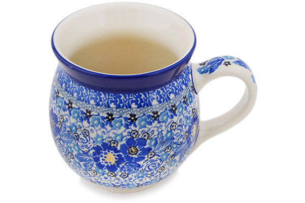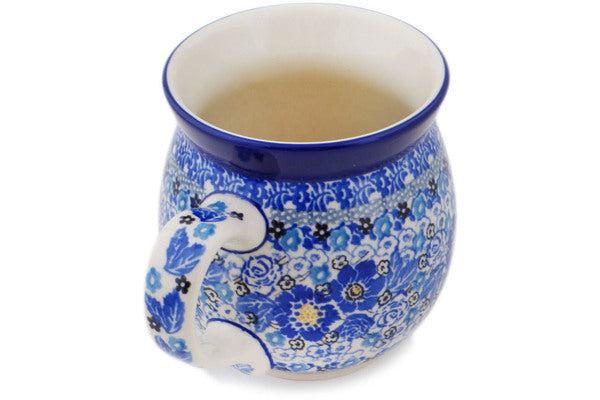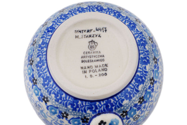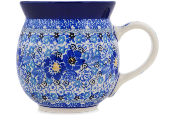 This Ultramarine 16 oz Bubble Mug was handmade and hand decorated in Boleslawiec, Poland by skilled artisans according to old traditional methods. This is a Polish pottery Signature Unikat, which means that it has been hand painted with both sponges and brushes and it is signed by the artist who painted it. Unikat pieces are the most intricate works of art. Larger Unikat items take hours of very careful work to finish. This Polish stoneware is microwave, dishwasher, freezer, and oven safe up to 480°F. It does not contain lead or cadmium. It is part of the Ultramarine Collection.