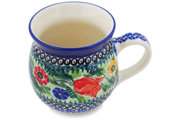 This Wildflower Path 16 oz Bubble Mug was handmade and hand decorated in Boleslawiec, Poland by skilled artisans according to old traditional methods. This is a Polish pottery Signature Unikat, which means that it has been hand painted with both sponges and brushes and it is signed by the artist who painted it. Unikat pieces are the most intricate works of art. Larger Unikat items take hours of very careful work to finish. This Polish stoneware is microwave, dishwasher, freezer, and oven safe up to 480°F. It does not contain lead or cadmium. It is part of the Wildflower Path Collection.