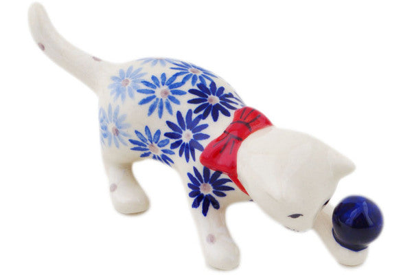 This Calm Radiance 5" Cat Figurine was handmade and hand decorated in Boleslawiec, Poland by skilled artisans according to old traditional methods. This is a Polish pottery Signature Unikat, which means that it has been hand painted with both sponges and brushes and it is signed by the artist who painted it. Unikat pieces are the most intricate works of art. Larger Unikat items take hours of very careful work to finish. This Polish stoneware is microwave, dishwasher, freezer, and oven safe up to 480°F. It does not contain lead or cadmium. It is part of the Calm Radiance Collection.