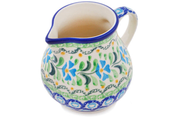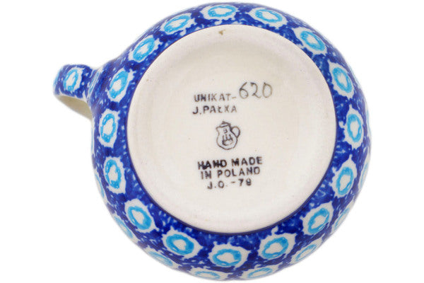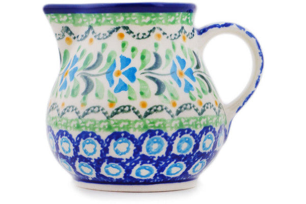 This Top Of The Morning 7 oz Creamer was handmade and hand decorated in Boleslawiec, Poland by skilled artisans according to old traditional methods. This is a Polish pottery Signature Unikat, which means that it has been hand painted with both sponges and brushes and it is signed by the artist who painted it. Unikat pieces are the most intricate works of art. Larger Unikat items take hours of very careful work to finish. This Polish stoneware is microwave, dishwasher, freezer, and oven safe up to 480°F. It does not contain lead or cadmium. It is part of the Top Of The Morning Collection.