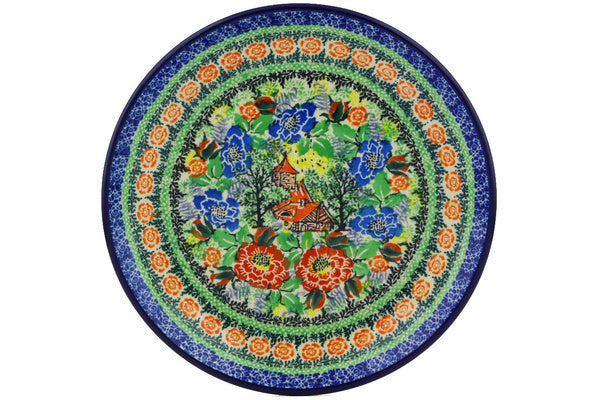This Hidden Chalet 8" Dessert Plate was handmade and hand decorated in Boleslawiec, Poland by skilled artisans according to old traditional methods. This is a Polish pottery Signature Unikat, which means that it has been hand painted with both sponges and brushes and it is signed by the artist who painted it. Unikat pieces are the most intricate works of art. Larger Unikat items take hours of very careful work to finish. This Polish stoneware is microwave, dishwasher, freezer, and oven safe up to 480°F. It does not contain lead or cadmium. It is part of the Hidden Chalet Collection.