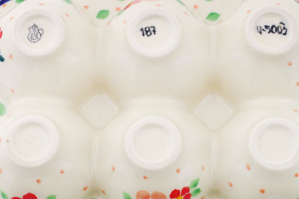 This Pink Divinity 7" Egg Crate was handmade and hand decorated in Boleslawiec, Poland by skilled artisans according to old traditional methods. This is a Polish pottery Signature Unikat, which means that it has been hand painted with both sponges and brushes and it is signed by the artist who painted it. Unikat pieces are the most intricate works of art. Larger Unikat items take hours of very careful work to finish. This Polish stoneware is microwave, dishwasher, freezer, and oven safe up to 480°F. It does not contain lead or cadmium. It is part of the Pink Divinity Collection.