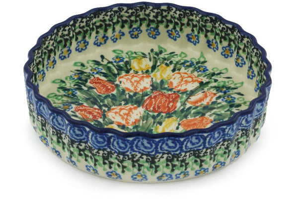 This Delightful Element 6" Fluted Pie Dish was handmade and hand decorated in Boleslawiec, Poland by skilled artisans according to old traditional methods. This is a Polish pottery Signature Unikat, which means that it has been hand painted with both sponges and brushes and it is signed by the artist who painted it. Unikat pieces are the most intricate works of art. Larger Unikat items take hours of very careful work to finish. This Polish stoneware is microwave, dishwasher, freezer, and oven safe up to 480°F. It does not contain lead or cadmium. It is part of the Delightful Element Collection.