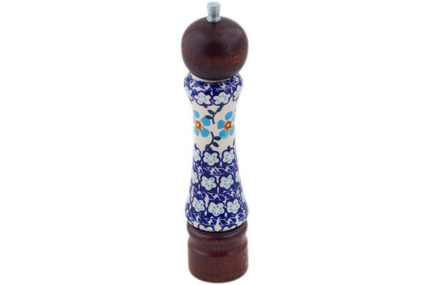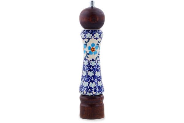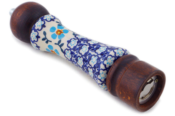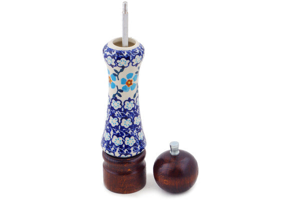 This Blue Chain 8" Grinder was handmade and hand decorated in Boleslawiec, Poland by skilled artisans according to old traditional methods. This is a Polish pottery Signature Unikat, which means that it has been hand painted with both sponges and brushes and it is signed by the artist who painted it. Unikat pieces are the most intricate works of art. Larger Unikat items take hours of very careful work to finish. This Polish stoneware is microwave, dishwasher, freezer, and oven safe up to 480°F. It does not contain lead or cadmium. It is part of the Blue Chain Collection.