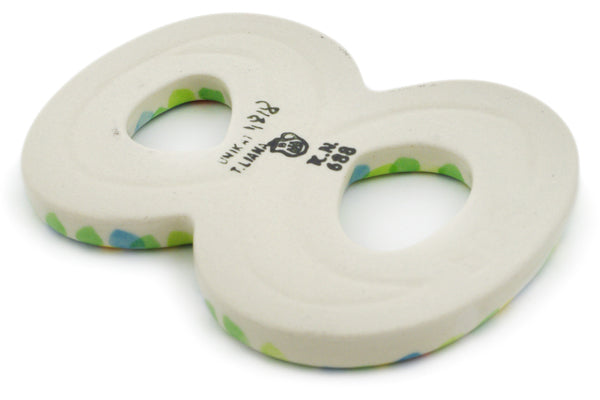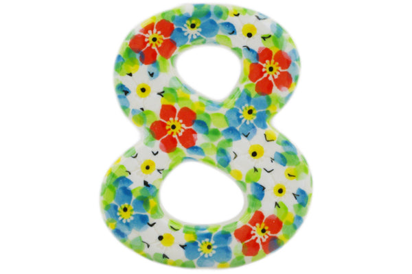 This Colorful Dizziness 4-inch House Number EIGHT (8) was handmade and hand decorated in Boleslawiec, Poland by skilled artisans according to old traditional methods. This is a Polish pottery Signature Unikat, which means that it has been hand painted with both sponges and brushes and it is signed by the artist who painted it. Unikat pieces are the most intricate works of art. Larger Unikat items take hours of very careful work to finish. This Polish stoneware is microwave, dishwasher, freezer, and oven safe up to 480°F. It does not contain lead or cadmium. It is part of the Colorful Dizziness Collection.