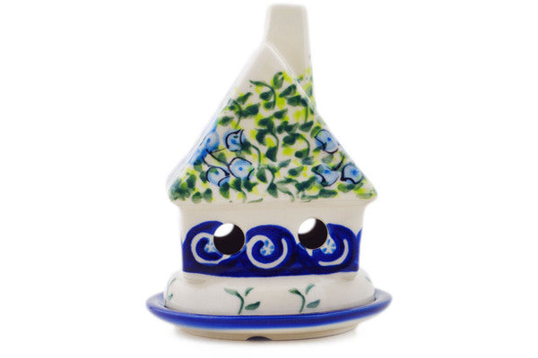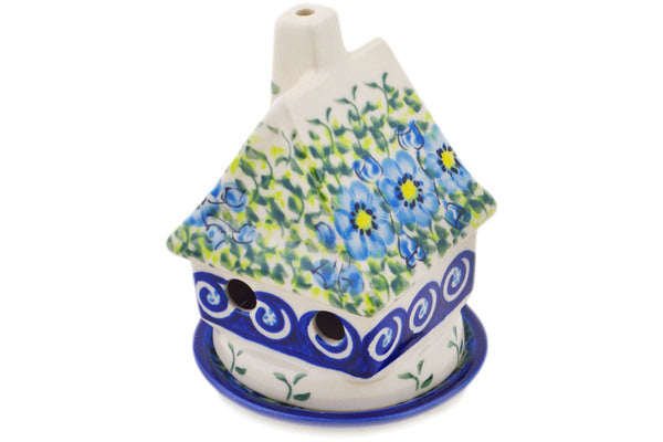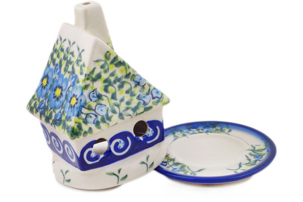 This Gorgeous Morning Glory 5" House Shaped Candle Holder was handmade and hand decorated in Boleslawiec, Poland by skilled artisans according to old traditional methods. This is a Polish pottery Signature Unikat, which means that it has been hand painted with both sponges and brushes and it is signed by the artist who painted it. Unikat pieces are the most intricate works of art. Larger Unikat items take hours of very careful work to finish. This Polish stoneware is microwave, dishwasher, freezer, and oven safe up to 480°F. It does not contain lead or cadmium. It is part of the Gorgeous Morning Glory Collection.
