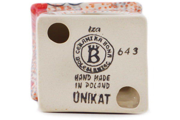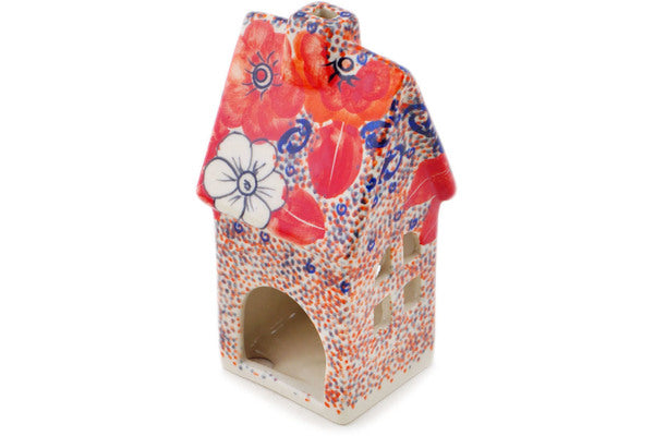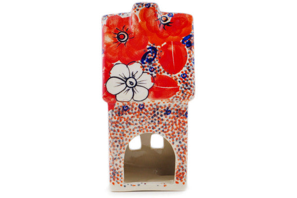 This Poppy Passion 6" House Shaped Candle Holder was handmade and hand decorated in Boleslawiec, Poland by skilled artisans according to old traditional methods. This is a Polish pottery Signature Unikat, which means that it has been hand painted with both sponges and brushes and it is signed by the artist who painted it. Unikat pieces are the most intricate works of art. Larger Unikat items take hours of very careful work to finish. This Polish stoneware is microwave, dishwasher, freezer, and oven safe up to 480°F. It does not contain lead or cadmium. It is part of the Poppy Passion Collection.