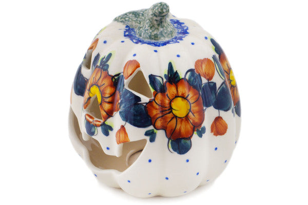 This Autumn Pansies 6" Jack O Lantern Candle Holder was handmade and hand decorated in Boleslawiec, Poland by skilled artisans according to old traditional methods. This is a Polish pottery Signature Unikat, which means that it has been hand painted with both sponges and brushes and it is signed by the artist who painted it. Unikat pieces are the most intricate works of art. Larger Unikat items take hours of very careful work to finish. This Polish stoneware is microwave, dishwasher, freezer, and oven safe up to 480°F. It does not contain lead or cadmium. It is part of the Autumn Pansies Collection.