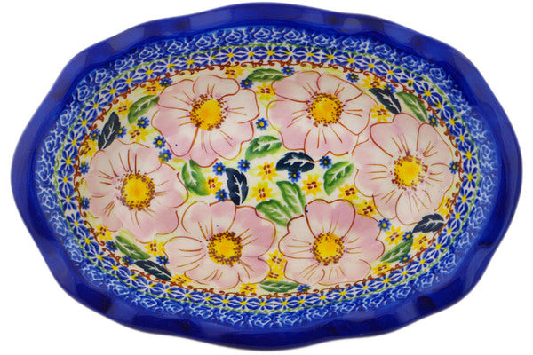 This Pink Delight 11" Oval Bowl was handmade and hand decorated in Boleslawiec, Poland by skilled artisans according to old traditional methods. This is a Polish pottery Signature Unikat, which means that it has been hand painted with both sponges and brushes and it is signed by the artist who painted it. Unikat pieces are the most intricate works of art. Larger Unikat items take hours of very careful work to finish. This Polish stoneware is microwave, dishwasher, freezer, and oven safe up to 480°F. It does not contain lead or cadmium. It is part of the Pink Delight Collection.