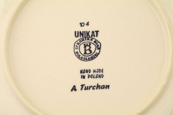 This Poppy Trio 10" Plate was handmade and hand decorated in Boleslawiec, Poland by skilled artisans according to old traditional methods. This is a Polish pottery Signature Unikat, which means that it has been hand painted with both sponges and brushes and it is signed by the artist who painted it. Unikat pieces are the most intricate works of art. Larger Unikat items take hours of very careful work to finish. This Polish stoneware is microwave, dishwasher, freezer, and oven safe up to 480°F. It does not contain lead or cadmium. It is part of the Poppy Trio Collection.