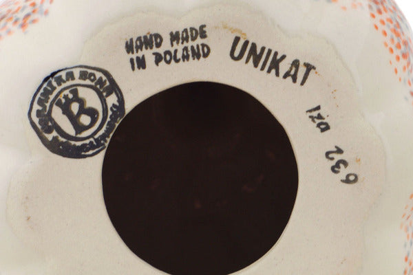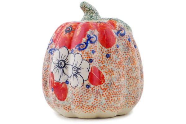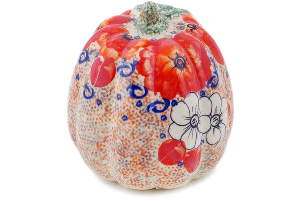 This Poppy Passion 6" Pumpkin Figurine was handmade and hand decorated in Boleslawiec, Poland by skilled artisans according to old traditional methods. This is a Polish pottery Signature Unikat, which means that it has been hand painted with both sponges and brushes and it is signed by the artist who painted it. Unikat pieces are the most intricate works of art. Larger Unikat items take hours of very careful work to finish. This Polish stoneware is microwave, dishwasher, freezer, and oven safe up to 480°F. It does not contain lead or cadmium. It is part of the Poppy Passion Collection.