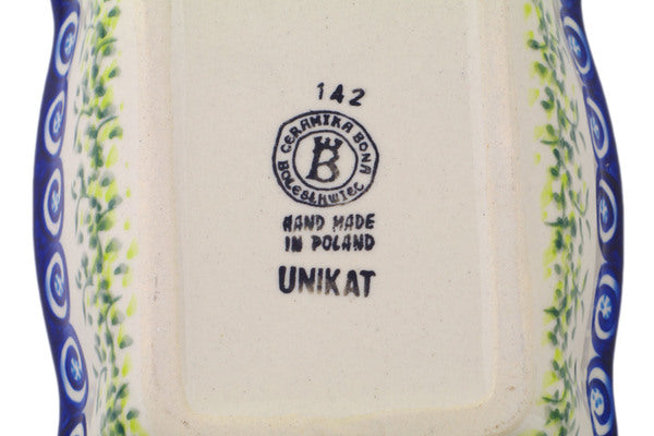 This Gorgeous Morning Glory 8" Rectangular Baker was handmade and hand decorated in Boleslawiec, Poland by skilled artisans according to old traditional methods. This is a Polish pottery Signature Unikat, which means that it has been hand painted with both sponges and brushes and it is signed by the artist who painted it. Unikat pieces are the most intricate works of art. Larger Unikat items take hours of very careful work to finish. This Polish stoneware is microwave, dishwasher, freezer, and oven safe up to 480°F. It does not contain lead or cadmium. It is part of the Gorgeous Morning Glory Collection.
