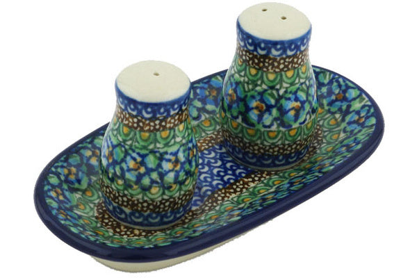 This Mardi Gras 5" Salt and Pepper Set was handmade and hand decorated in Boleslawiec, Poland by skilled artisans according to old traditional methods. This is a Polish pottery Signature Unikat, which means that it has been hand painted with both sponges and brushes and it is signed by the artist who painted it. Unikat pieces are the most intricate works of art. Larger Unikat items take hours of very careful work to finish. This Polish stoneware is microwave, dishwasher, freezer, and oven safe up to 480°F. It does not contain lead or cadmium. It is part of the Mardi Gras Collection.