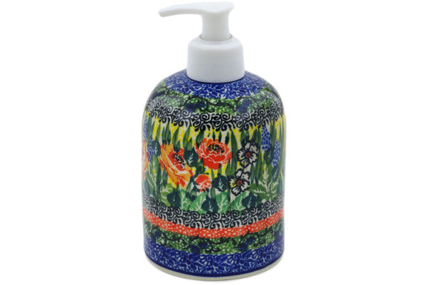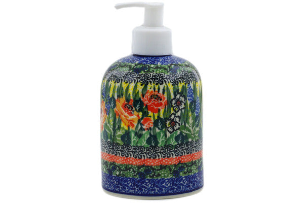 This Splendid Morning Glow 5" Soap Dispenser was handmade and hand decorated in Boleslawiec, Poland by skilled artisans according to old traditional methods. This is a Polish pottery Signature Unikat, which means that it has been hand painted with both sponges and brushes and it is signed by the artist who painted it. Unikat pieces are the most intricate works of art. Larger Unikat items take hours of very careful work to finish. This Polish stoneware is microwave, dishwasher, freezer, and oven safe up to 480°F. It does not contain lead or cadmium. It is part of the Splendid Morning Glow Collection.