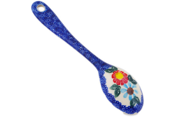 This Red-Hot Summer 6" Spoon was handmade and hand decorated in Boleslawiec, Poland by skilled artisans according to old traditional methods. This is a Polish pottery Signature Unikat, which means that it has been hand painted with both sponges and brushes and it is signed by the artist who painted it. Unikat pieces are the most intricate works of art. Larger Unikat items take hours of very careful work to finish. This Polish stoneware is microwave, dishwasher, freezer, and oven safe up to 480°F. It does not contain lead or cadmium. It is part of the Red-Hot Summer Collection.