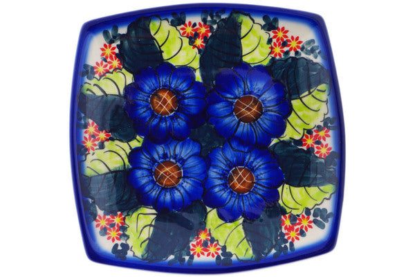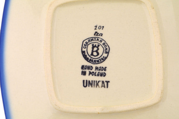 This Blue Bouquet 7" Square Plate was handmade and hand decorated in Boleslawiec, Poland by skilled artisans according to old traditional methods. This is a Polish pottery Signature Unikat, which means that it has been hand painted with both sponges and brushes and it is signed by the artist who painted it. Unikat pieces are the most intricate works of art. Larger Unikat items take hours of very careful work to finish. This Polish stoneware is microwave, dishwasher, freezer, and oven safe up to 480°F. It does not contain lead or cadmium. It is part of the Blue Bouquet Collection.