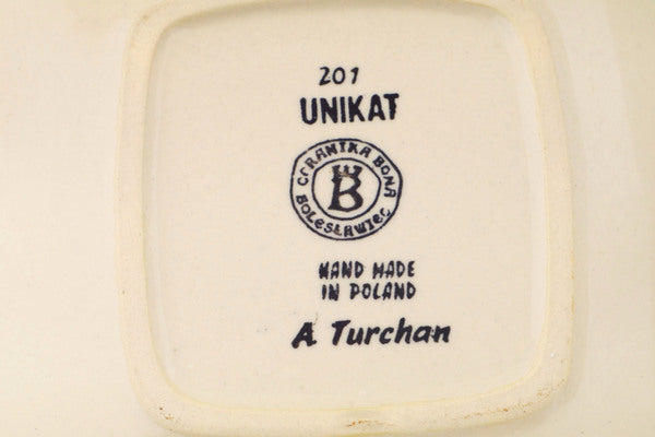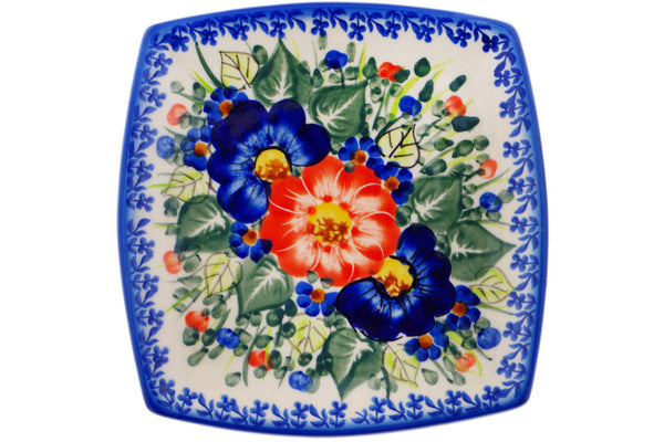 This Poppy Trio 7" Square Plate was handmade and hand decorated in Boleslawiec, Poland by skilled artisans according to old traditional methods. This is a Polish pottery Signature Unikat, which means that it has been hand painted with both sponges and brushes and it is signed by the artist who painted it. Unikat pieces are the most intricate works of art. Larger Unikat items take hours of very careful work to finish. This Polish stoneware is microwave, dishwasher, freezer, and oven safe up to 480°F. It does not contain lead or cadmium. It is part of the Poppy Trio Collection.