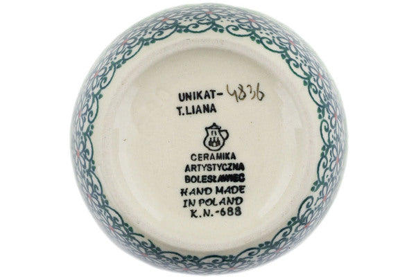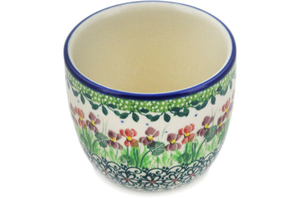 This Plum Garden 6 oz Tumbler was handmade and hand decorated in Boleslawiec, Poland by skilled artisans according to old traditional methods. This is a Polish pottery Signature Unikat, which means that it has been hand painted with both sponges and brushes and it is signed by the artist who painted it. Unikat pieces are the most intricate works of art. Larger Unikat items take hours of very careful work to finish. This Polish stoneware is microwave, dishwasher, freezer, and oven safe up to 480°F. It does not contain lead or cadmium. It is part of the Plum Garden Collection.