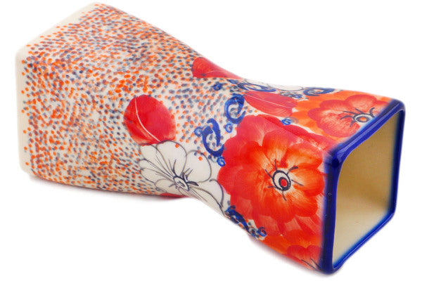 This Poppy Passion 7" Vase was handmade and hand decorated in Boleslawiec, Poland by skilled artisans according to old traditional methods. This is a Polish pottery Signature Unikat, which means that it has been hand painted with both sponges and brushes and it is signed by the artist who painted it. Unikat pieces are the most intricate works of art. Larger Unikat items take hours of very careful work to finish. This Polish stoneware is microwave, dishwasher, freezer, and oven safe up to 480°F. It does not contain lead or cadmium. It is part of the Poppy Passion Collection.
