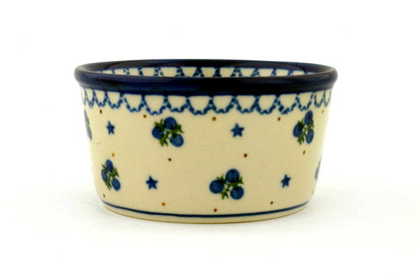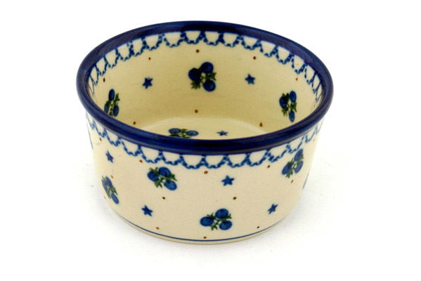 This Blueberry Stars Small Ramekin Bowl was handmade and hand decorated in Boleslawiec, Poland by skilled artisans according to old traditional methods. This Polish stoneware is microwave, dishwasher, freezer, and oven safe up to 480°F. It does not contain lead or cadmium. It is part of the Blueberry Stars Collection.