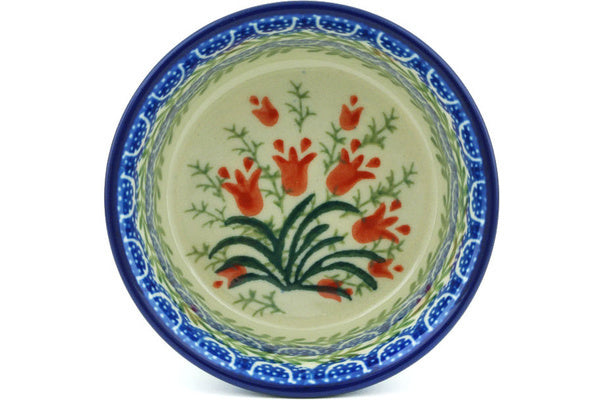 This Crimson Bells Small Ramekin Bowl was handmade and hand decorated in Boleslawiec, Poland by skilled artisans according to old traditional methods. This Polish stoneware is microwave, dishwasher, freezer, and oven safe up to 480°F. It does not contain lead or cadmium. It is part of the Crimson Bells Collection.