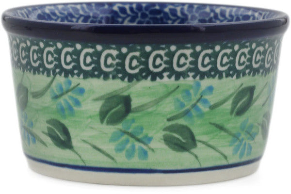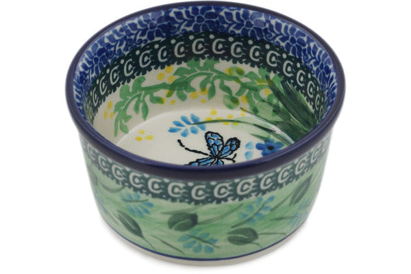This Dragonfly Delight Small Ramekin Bowl was handmade and hand decorated in Boleslawiec, Poland by skilled artisans according to old traditional methods. This is a Polish pottery Signature Unikat, which means that it has been hand painted with both sponges and brushes and it is signed by the artist who painted it. Unikat pieces are the most intricate works of art. Larger Unikat items take hours of very careful work to finish. This Polish stoneware is microwave, dishwasher, freezer, and oven safe up to 480°F. It does not contain lead or cadmium. It is part of the Dragonfly Delight Collection.