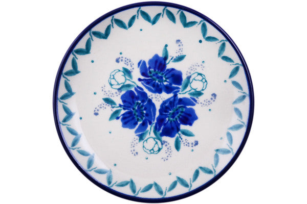 This Spearmint Rose 4" Mini Plate, Coaster plate was handmade and hand decorated in Boleslawiec, Poland by skilled artisans according to old traditional methods. This Polish stoneware is microwave, dishwasher, freezer, and oven safe up to 480°F. It does not contain lead or cadmium. It is part of the Spearmint Rose Collection.