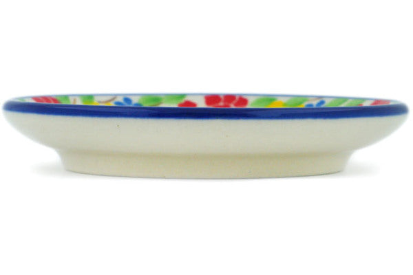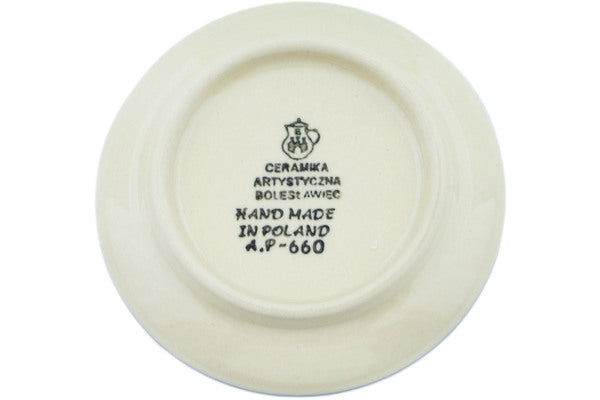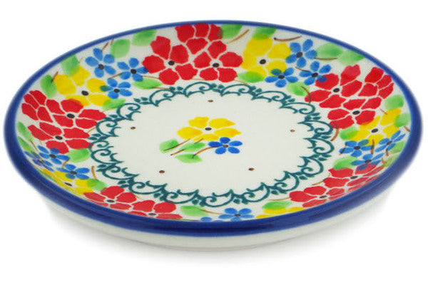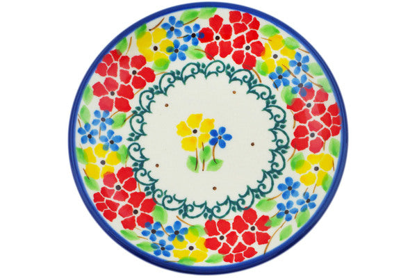This Sunny Spring 4" Mini Plate, Coaster plate was handmade and hand decorated in Boleslawiec, Poland by skilled artisans according to old traditional methods. This Polish stoneware is microwave, dishwasher, freezer, and oven safe up to 480°F. It does not contain lead or cadmium. It is part of the Sunny Spring Collection.