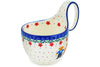 This Autumn Poppies 16 oz Bowl with Loop-Handle was handmade and hand decorated in Boleslawiec, Poland by skilled artisans according to old traditional methods. This is a Polish pottery Signature Unikat, which means that it has been hand painted with both sponges and brushes and it is signed by the artist who painted it. Unikat pieces are the most intricate works of art. Larger Unikat items take hours of very careful work to finish. This Polish stoneware is microwave, dishwasher, freezer, and oven safe up to 480°F. It does not contain lead or cadmium. It is part of the Autumn Poppies Collection.