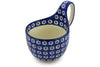 This Blue Bird Delight 16 oz Bowl with Loop-Handle was handmade and hand decorated in Boleslawiec, Poland by skilled artisans according to old traditional methods. This is a Polish pottery Signature Unikat, which means that it has been hand painted with both sponges and brushes and it is signed by the artist who painted it. Unikat pieces are the most intricate works of art. Larger Unikat items take hours of very careful work to finish. This Polish stoneware is microwave, dishwasher, freezer, and oven safe up to 480°F. It does not contain lead or cadmium. It is part of the Blue Bird Delight Collection.