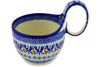 This Blue Hydrangea 16 oz Bowl with Loop-Handle was handmade and hand decorated in Boleslawiec, Poland by skilled artisans according to old traditional methods. This is a Polish pottery Signature Unikat, which means that it has been hand painted with both sponges and brushes and it is signed by the artist who painted it. Unikat pieces are the most intricate works of art. Larger Unikat items take hours of very careful work to finish. This Polish stoneware is microwave, dishwasher, freezer, and oven safe up to 480°F. It does not contain lead or cadmium. It is part of the Blue Hydrangea Collection.