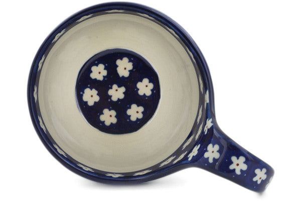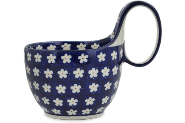 This Flower Vibrancy 16 oz Bowl with Loop-Handle was handmade and hand decorated in Boleslawiec, Poland by skilled artisans according to old traditional methods. This Polish stoneware is microwave, dishwasher, freezer, and oven safe up to 480°F. It does not contain lead or cadmium. It is part of the Flower Vibrancy Collection.