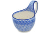This Rosey Starburst Poppy 16 oz Bowl with Loop-Handle was handmade and hand decorated in Boleslawiec, Poland by skilled artisans according to old traditional methods. This is a Polish pottery Signature Unikat, which means that it has been hand painted with both sponges and brushes and it is signed by the artist who painted it. Unikat pieces are the most intricate works of art. Larger Unikat items take hours of very careful work to finish. This Polish stoneware is microwave, dishwasher, freezer, and oven safe up to 480°F. It does not contain lead or cadmium. It is part of the Rosey Starburst Poppy Collection.